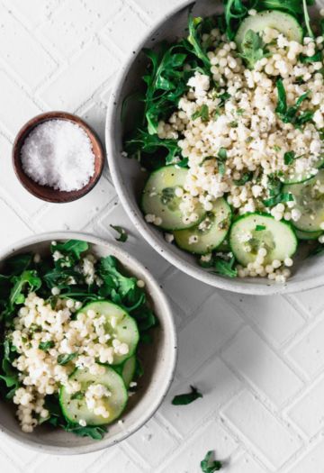 Lemony Arugula Salad with Couscous, Cucumbers and Feta